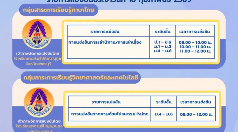 บริหารวิชาการประชาสัมพันธ์ 17 กุมภาพันธ์ 2026 พัชรากร สุวีรานุวัฒน์ 103 Views รายการแข่งขันงานศิลปหัตถกรรมนักเรียน ระดับชาติ ครั้งที่ 73 การศึกษาพิเศษ ประเภทบุคคลออทิสติก ประจำวันที่ 17 กุมภา Read More