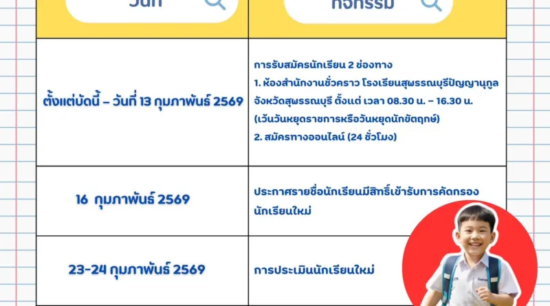 เปิดรับสมัคร นักเรียนใหม่ปึการศึกษา 2569