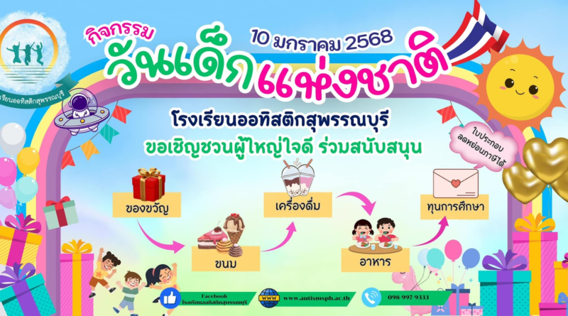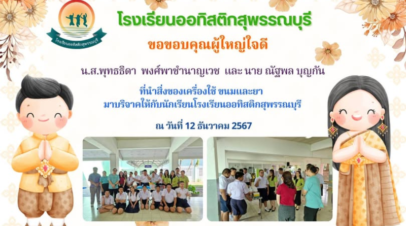 โรงเรียนออทิสติกสุพรรณบุรี ขอขอบคุณผู้ใหญ่ใจดี นางสาววิลาสินี มีศรี และนางสาวลัดดาวัลย์ ประทีปะจิตติ